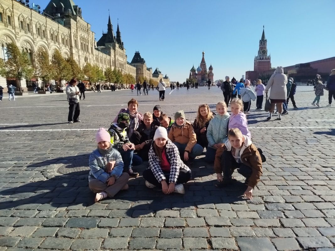 Учащиеся 3 Г и 4 А классов посетили столицу нашей Родины — город Москву. Ребята побывали на самой важной, самой большой и красивой площади не только Москвы, но и всей страны. Здесь школьники познакомились с героями народного ополчения К. Мининым и Д. Пожарским, которым благодарные москвичи поставили памятник, увидели самые главные и точные часы — куранты на Спасской башне Кремля, загадали свои заветные желания на нулевом километре РФ, полюбовались красотой храма Василия Блаженного и узнали много нового и интересного из истории нашей Родины. Самые яркие впечатления у ребят вызвала смена почётного караула у вечного огня… Надолго запомнится экскурсия по Красной площади.