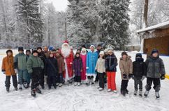 И вот ребята из 4 «В» класса отправились в зимнее путешествие за каток в Митино. Вот здесь и загадочный лес, огромные сугробы белого снега, долгожданный лёд, дружная команда озорных одноклассников и коньки! И на коньках и Дед Мороз, и Снегурочка, и баба Яга!