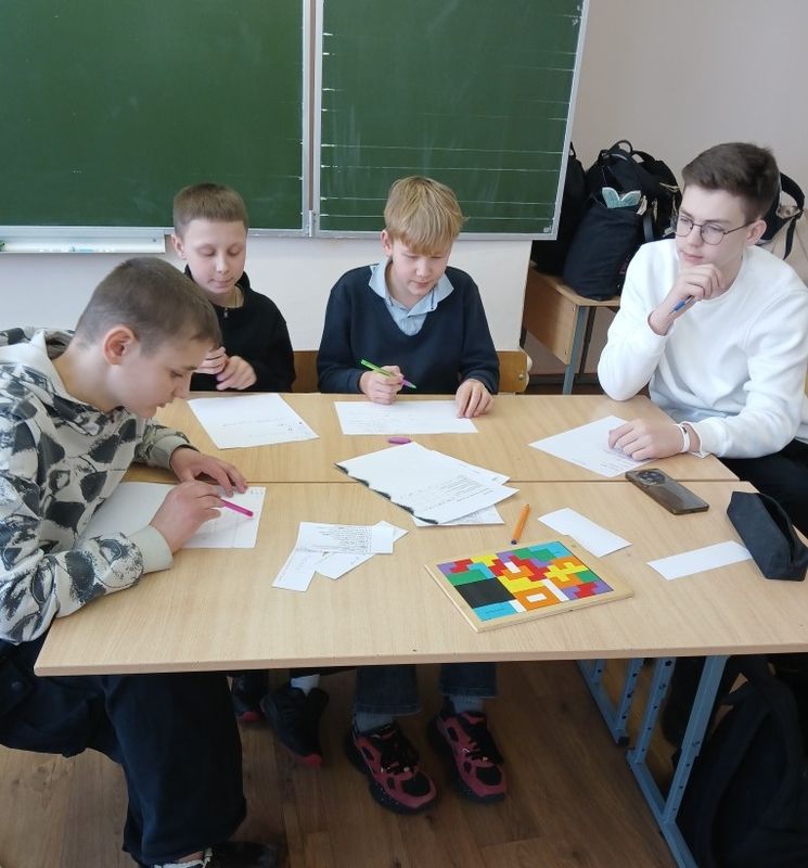В рамках недели математики ученики 6-х классов приняли участие в игре "Час весёлой математики". Ребята соревновались в умении считать, рисовать, отгадывать загадки. Были задания на смекалку, на внимание, на быстроту реакции. В упорной борьбе победила команда 6в класса. Поздравляем победителей!