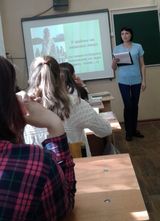 Накануне великого праздника «Дня победы» 8 мая 2018г. в 8В и 9В классах педагогом-библиотекарем был проведен урок по повести Б. Васильева «А зори здесь тихие».